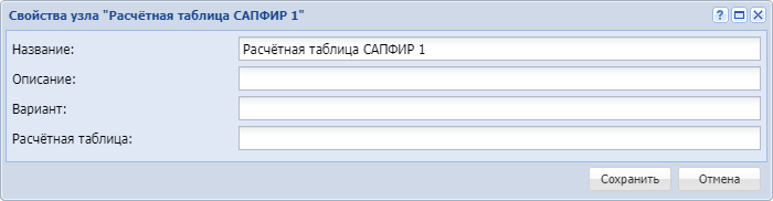 Узел Расчётная таблица САПФИР позволяет получить данные указанной расчётной таблицы САПФИР из указанного варианта.